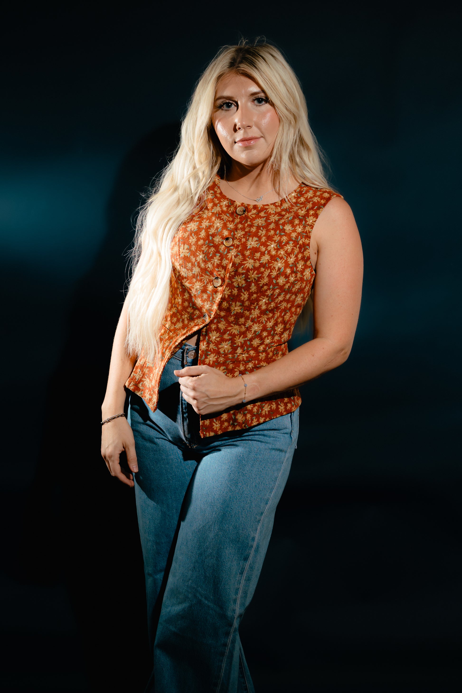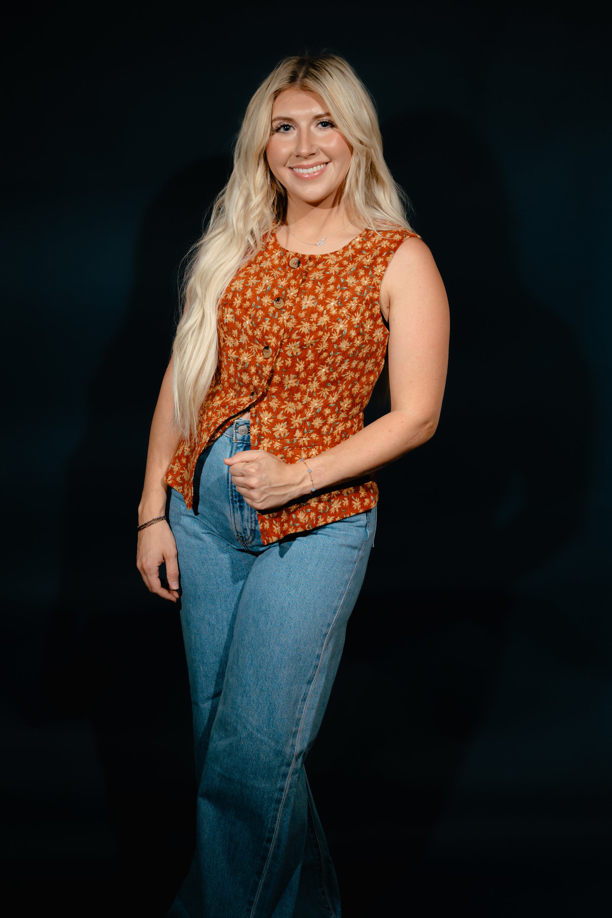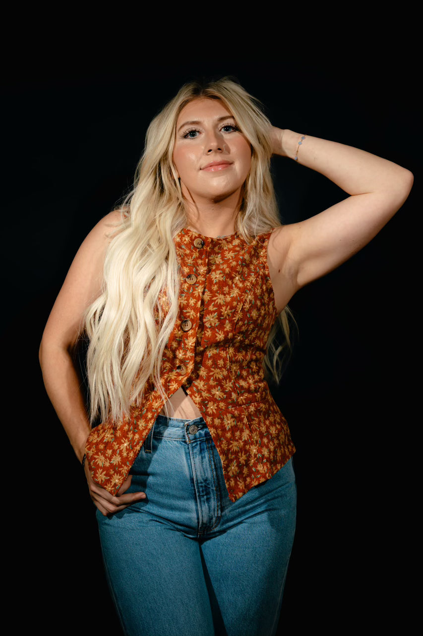 **model can wear small or medium for a fitted look. Or a large or x-large for a more loose fit. Currently in medium for model photos. Model is 5‘1“ and 130 pounds.