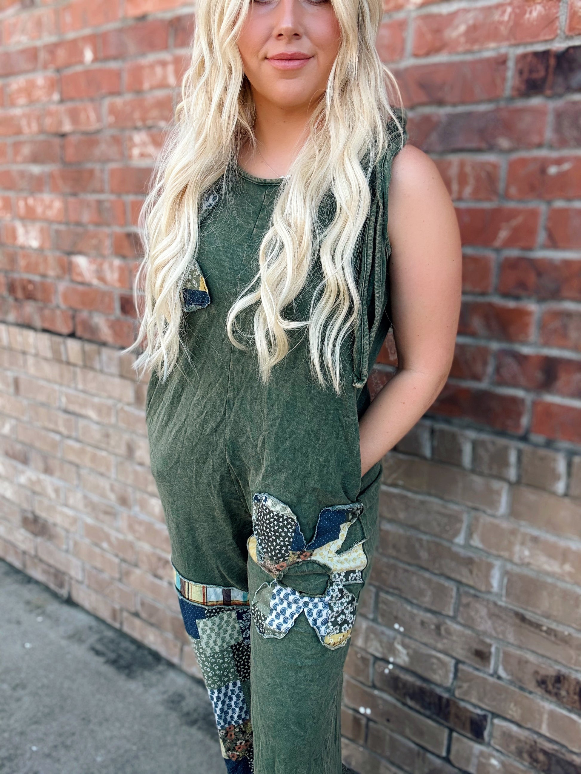 A little wildflower soul meets patchwork storybook charm. The Garden Gate Jumpsuit is a throw-on piece that looks like you thought about your outfit… even if you didn’t. Featuring soft washed olive fabric with vintage-inspired patchwork appliqués (yes, each one is slightly unique!), this relaxed fit jumpsuit has a slouchy, lived-in feel that only gets better with wear.