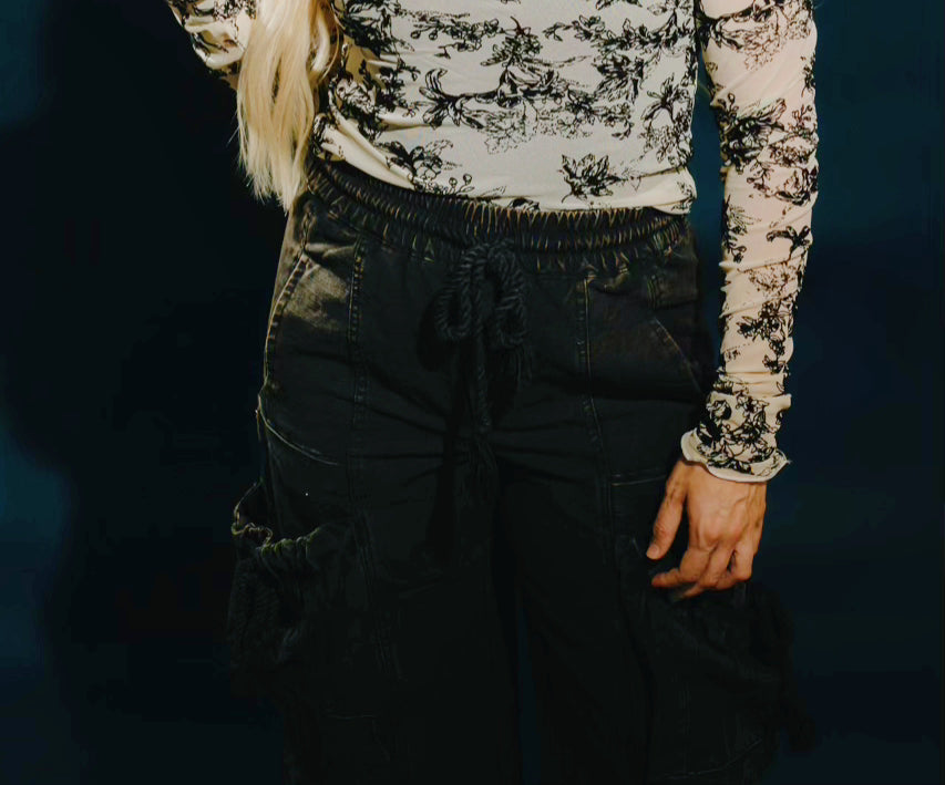 Crafted from a washed black cotton-blend fabric, the Midnight Cargo Trousers have that perfectly lived-in look and feel. Style them with a cropped tee or a fitted top for a casual weekend outfit, or pair with layers for a more elevated, grunge-inspired aesthetic.